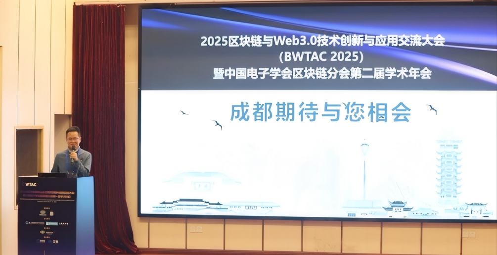 会议期间,电子科技大学教授、中国电子学会区块链分会委员曹晟受电子科技大学网络空间安全学院院长、中国电子学会区块链分会副主任委员张小松教授委托,对2025区块链和Web3.0技术创新与应用交流大会(BWTAC2025)暨中国电子学会区块链分会第二届学术年会的筹备情况做了简要介绍,大会计划于2025年在成都举办,并争取从国内会议上升为区块链分会的首届国际会议,牢铸学术内核,助力产业发展,进一步展现区块链分会平台型、枢纽型、开放型的组织优势。