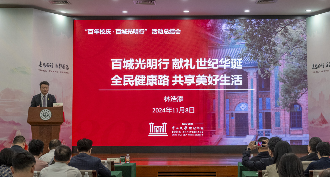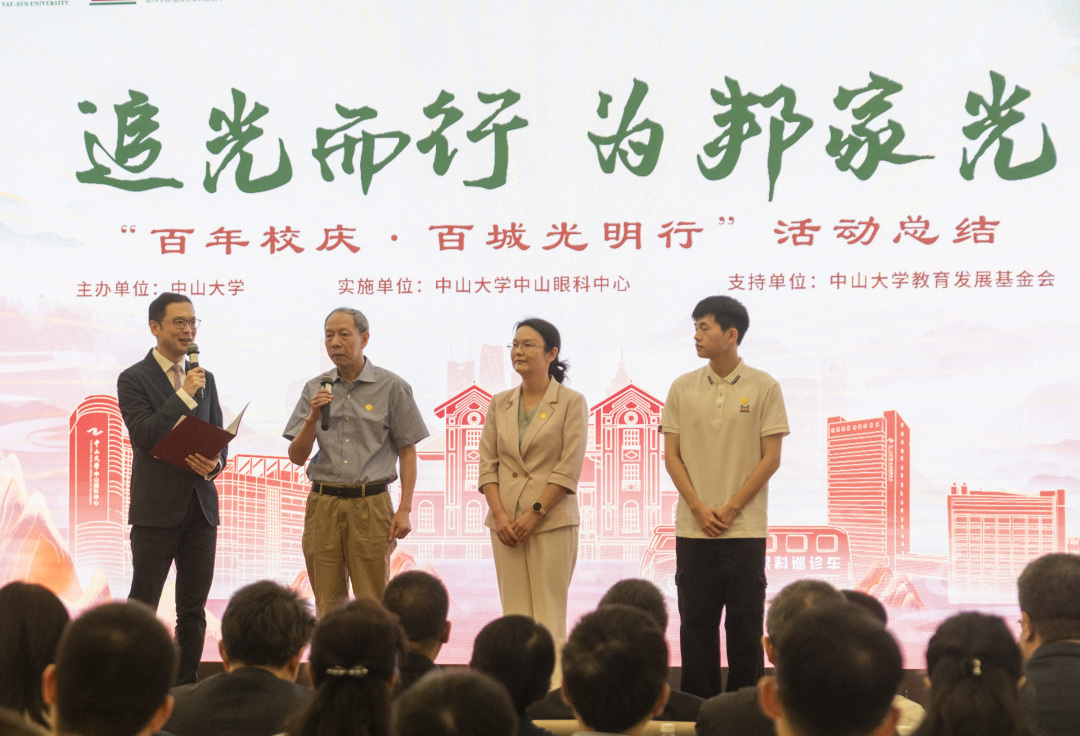11月8日,中山大学中山眼科中心在中山大学校园里召开“百年校庆·百城光明行”活动总结会,献礼即将到来的中山大学百年校庆。