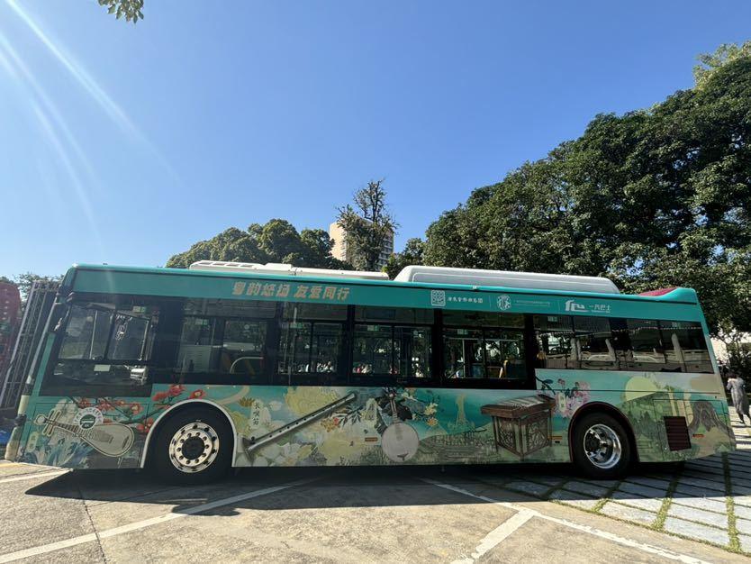 “欢迎乘坐广东音乐为主题5路车。做个文明人,日日好醒晨!谈吐风雅要提倡,礼貌待人系车厢。这厢有礼啦!”以“广东音乐”为主题的公交同样令人眼前一亮,全车设计以二胡、古筝、高胡等乐器为核心元素,搭配上岭南特色建筑背景,将乘客们带入一个充满岭南风情的音乐世界。车上设置了《双凤朝阳》《一支梅》《鸟投林》等家喻户晓的广东音乐,结合“友爱在车厢”活动38周年,配备定制“这厢有礼”特色语音报站。当车辆缓缓停靠在站点时,优美动听的旋律便会响起,让乘客在享受便捷出行的同时零距离感受广府文化。从湛江来广州旅游的何女士说,自己很喜欢听广东音乐,主题车的形式也很新颖:“坐着公交车听音乐看车外风景肯定很舒服。”