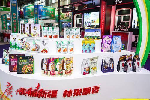 现场展示的各种新疆特色林果产品,精美的包装与优质的果品相得益彰。