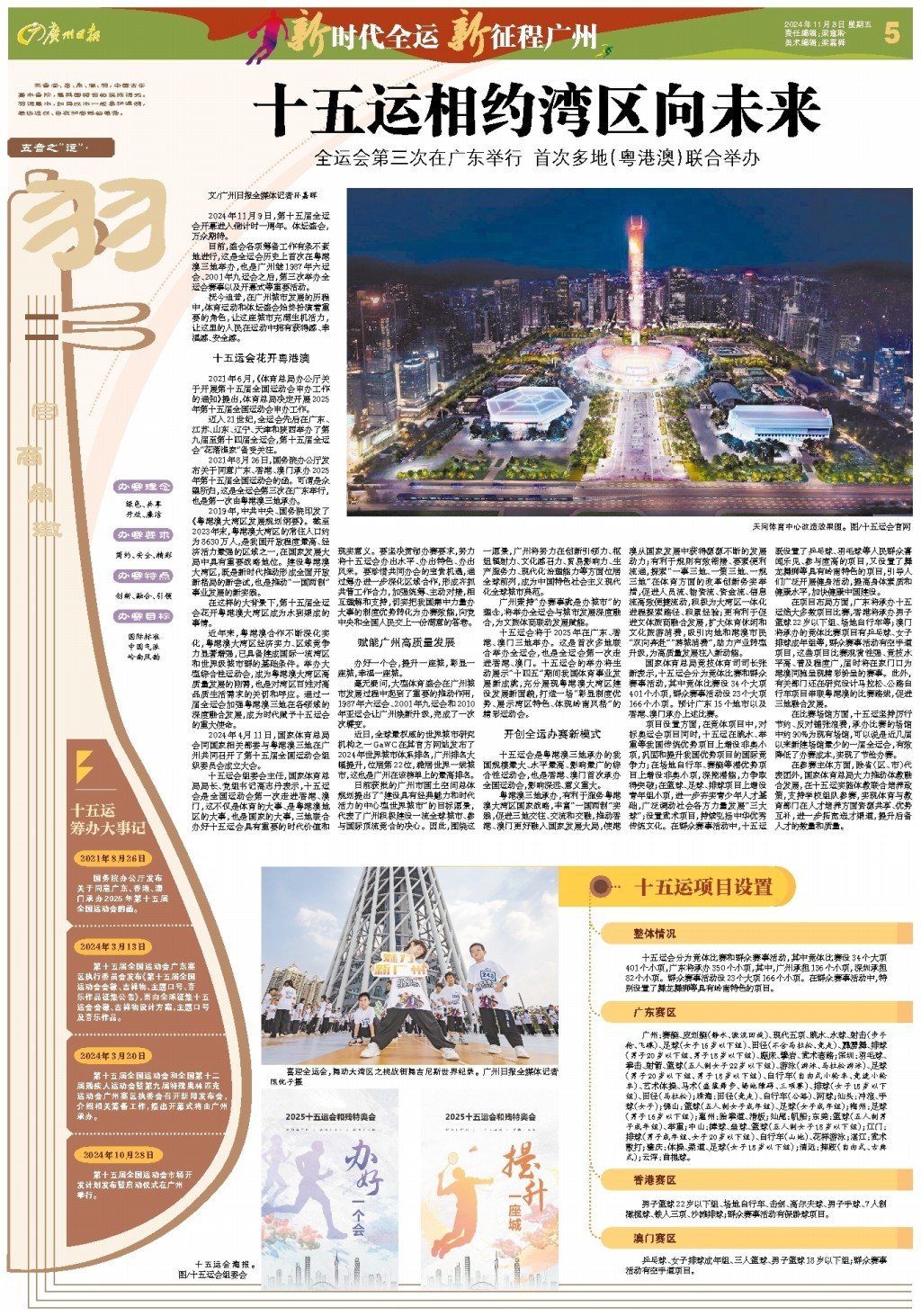 目前,盛会各项筹备工作有条不紊地进行,这是全运会历史上首次在粤港澳三地举办,也是广州继1987年六运会、2001年九运会之后,第三次举办全运会赛事以及开幕式等重要活动。