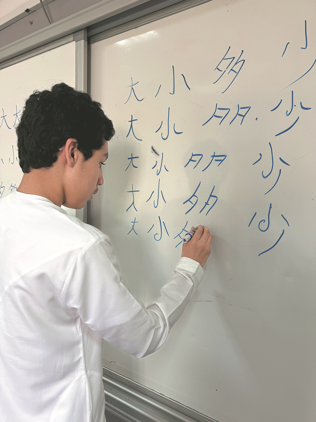 A student practices writing Chinese characters at Hamdan Bin Rashid Boys School in Dubai. PHOTO PROVIDED TO CHINA DAILY