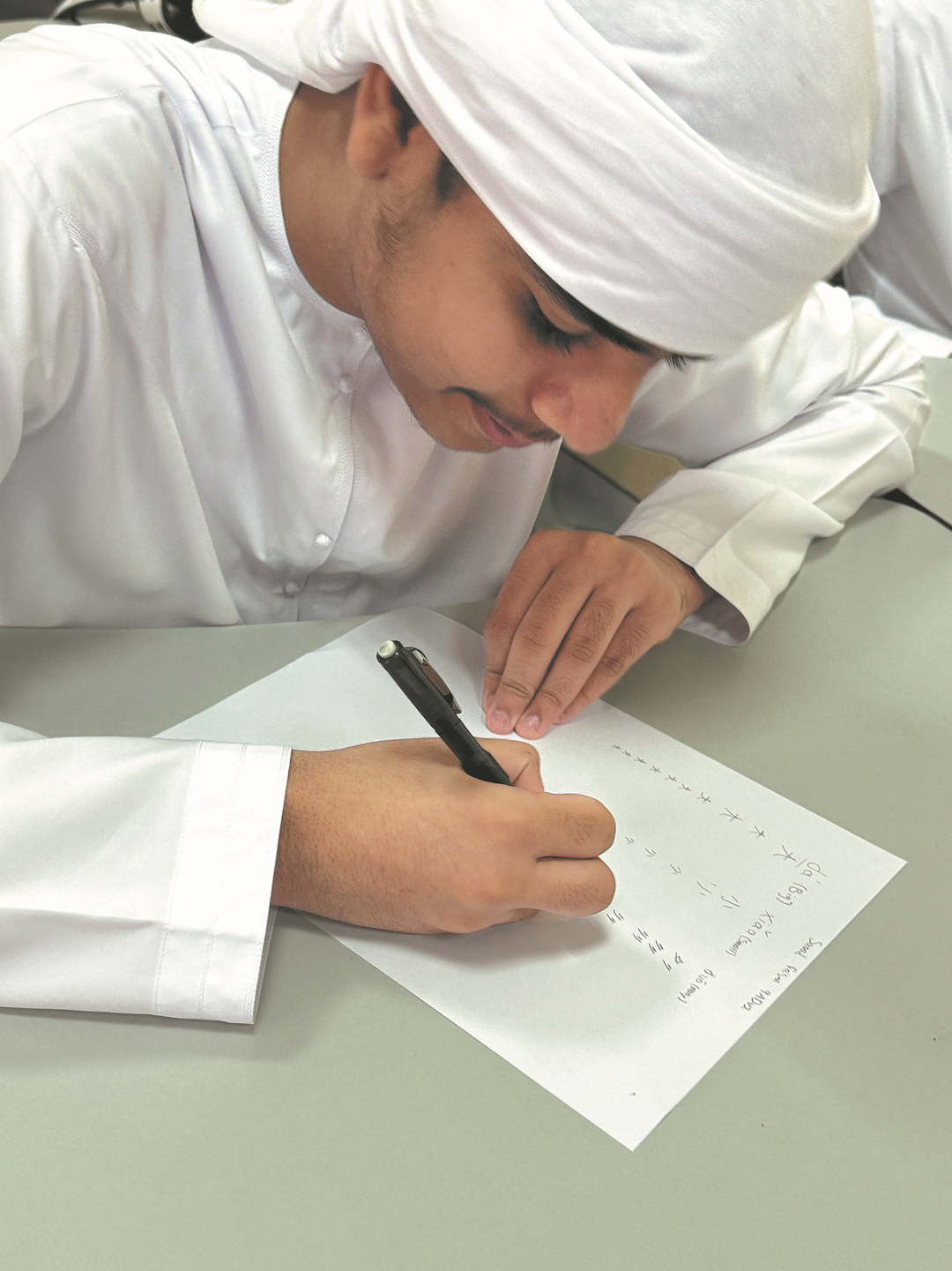 A student completes Chinese homework at Hamdan Bin Rashid Boys School. PHOTO PROVIDED TO CHINA DAILY