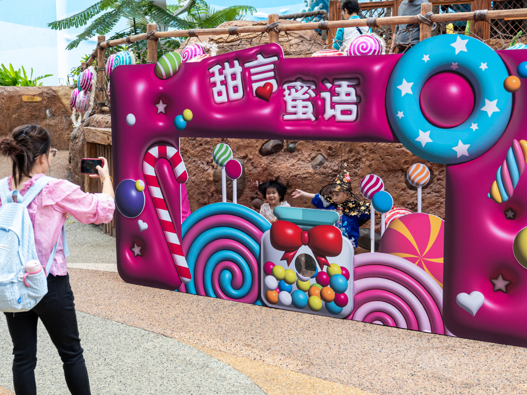 闯入糖果海洋,邂逅甜蜜奇缘。游客步入园中即刻被甜蜜包围,糖果装饰场景随处可见,分分钟拍出多巴胺大片。更能邂逅超级甜美的糖果精灵NPC,她们伴随音乐出现,带来动感的快闪舞蹈。游客们主动与NPC互动能解锁特别惊喜,获得专属小糖果,全场共享甜蜜时刻。