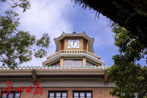 中山大学校史馆为格兰堂,楼顶有个“大钟楼”。