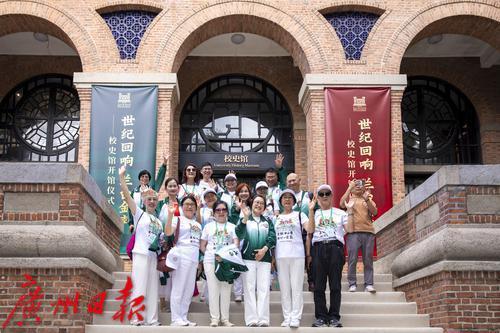 校友嘉宾在中山大学校史馆前合影留念。