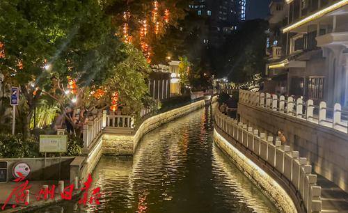 11月8日晚上,荔枝湾夜色迷人,大榕树上红红的灯笼高挂,沿岸装饰的灯带也给黑夜带来缤纷色彩。不少市民游人都在涌边流连,欣赏荔枝湾夜景。