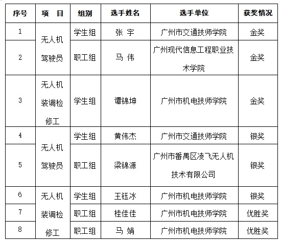 链接:2024年广东省无人机应用技术职业技能大赛广州选手获奖名单