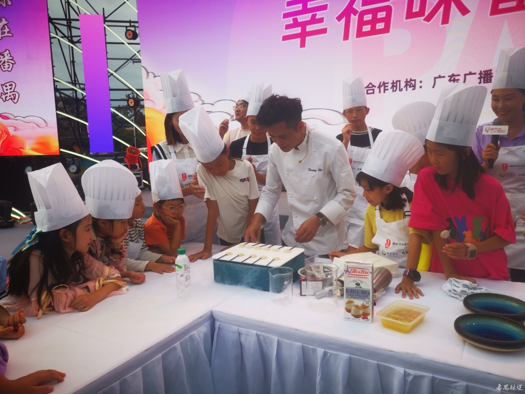 厨艺学堂邀请了粤菜烹饪大师卢锦泉,广州极客厨房联合创始人、餐创引擎研发总监兼执行主厨黄河,粤点制作大师黄认稳以及烘焙大师黎国雄等名厨现场教厨艺、做美食,吸引了不少亲子家庭参加和市民观摩。