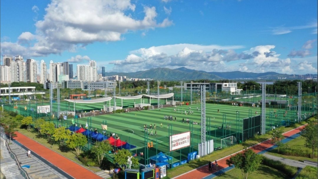 面对城市空间有限的挑战,福田区创新思路,复合利用城市公园、楼宇等空间,共建设了2207片体育场地设施,其中包括32片楼顶足球场,极大地满足了周边居民和上班族的健身需求。见缝插针建设笔架山体育公园、深福保文体服务中心和国际体育文化交流中心等体育场馆;围绕深圳市体育中心打造都市体育产业集聚地,招引中超足球俱乐部——深圳新鹏城足球俱乐部、CBA职业男篮俱乐部——深圳新世纪篮球俱乐部等职业体育俱乐部落地。特别是国内首创在水质净化厂屋顶上方建设的福田海滨生态体育公园,以其独特的足球主题和高效的空间利用方式,荣获“全国年度最佳体育创新奖”,成为深圳全市唯一获此殊荣的项目。