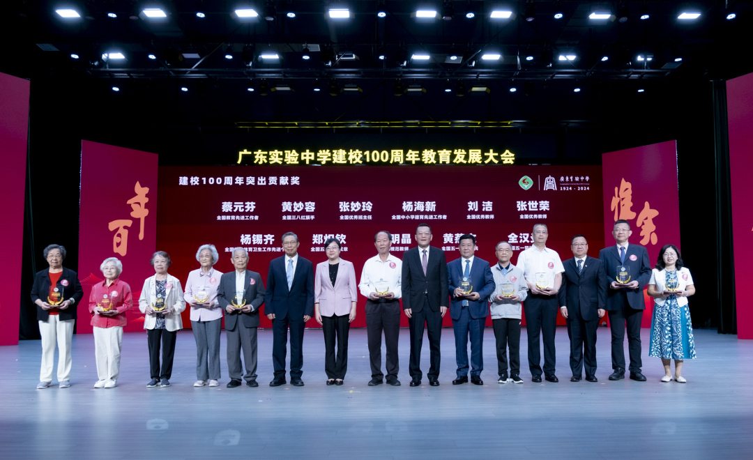 建校100周年之际,为表彰杰出贡献者,学校在大会同步举行了“建校100周年突出贡献奖”颁奖仪式。一批批在学校发展历程中有突出贡献的教师代表上台领奖。此外,清华大学、北京大学、中山大学、上海交通大学、复旦大学等多所高校以及多所中学、友好单位向省实发来了贺信。