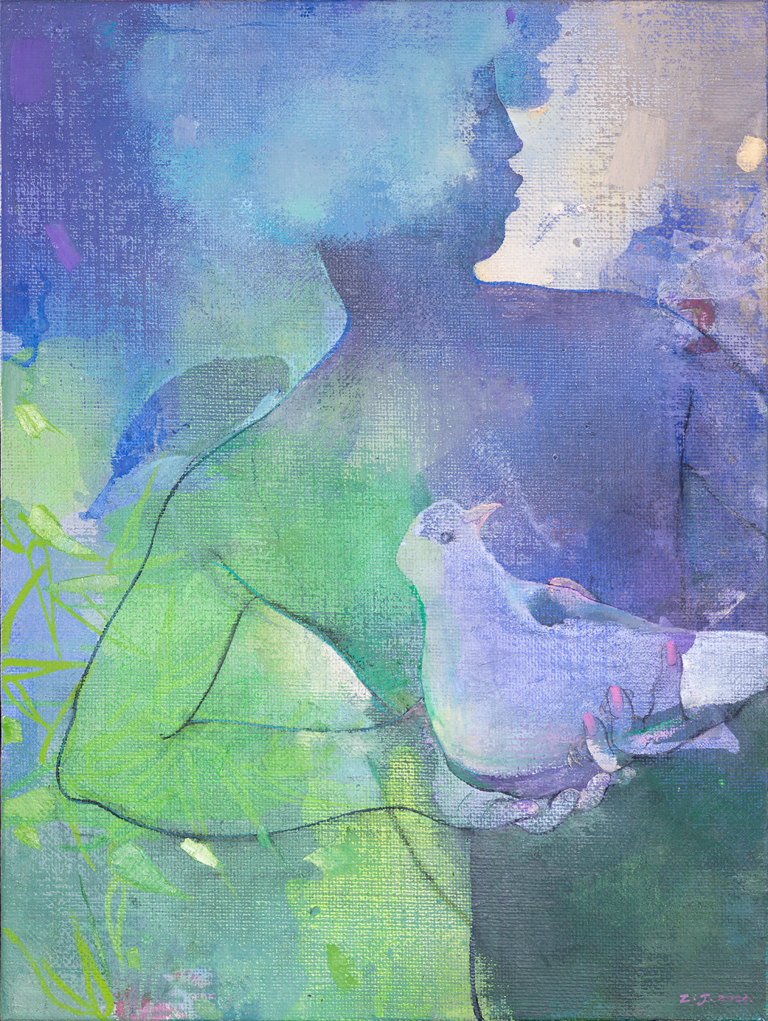 纵观陈子君二十余年的艺术创作就能发现,她的艺术始终没有偏离对自我的关注,尤其是对自我情感和生命意识的关注。陈子君的绘画中有着强烈的隐喻性,因此她的艺术中有着显而易见的寓言画的色彩。陈子君注重绘画实践过程中形成的新经验,她能从实践经验中总结新认识,也能将新认识转化为新创作。同时我们也要注意到,陈子君在绘画形式语言上的新探索,她的画面中大量使用泼彩的方式作画,这与中国传统绘画的关系变得愈加紧密。尤其是我们在《走出2022》画面中看到的墨竹图像,似乎意味着陈子君在中国文人画的思想体系中也受到了新的启发,这在其2019年创作的《拾》中也有清晰地展现。应该说,陈子君在持续认识自我的过程中深化着自己的创作,在世俗生活和精神世界之间搭建起了一座愈加坚实的真善之桥。