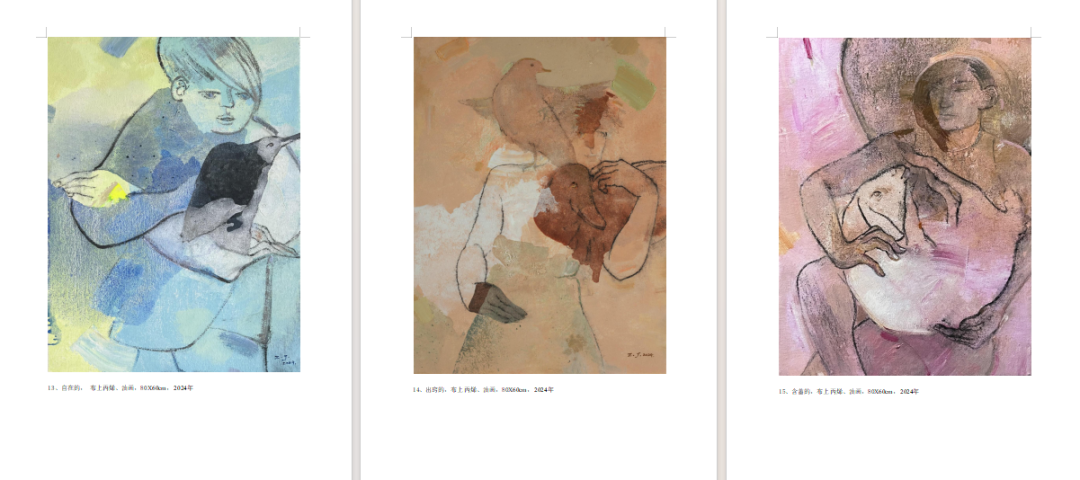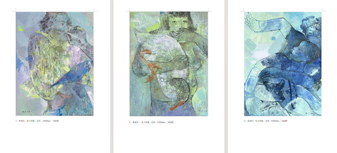 由21幅作品构成的组画《浓缩的形容词》,布上丙烯、油画,80×60cm×21,2023-2024年