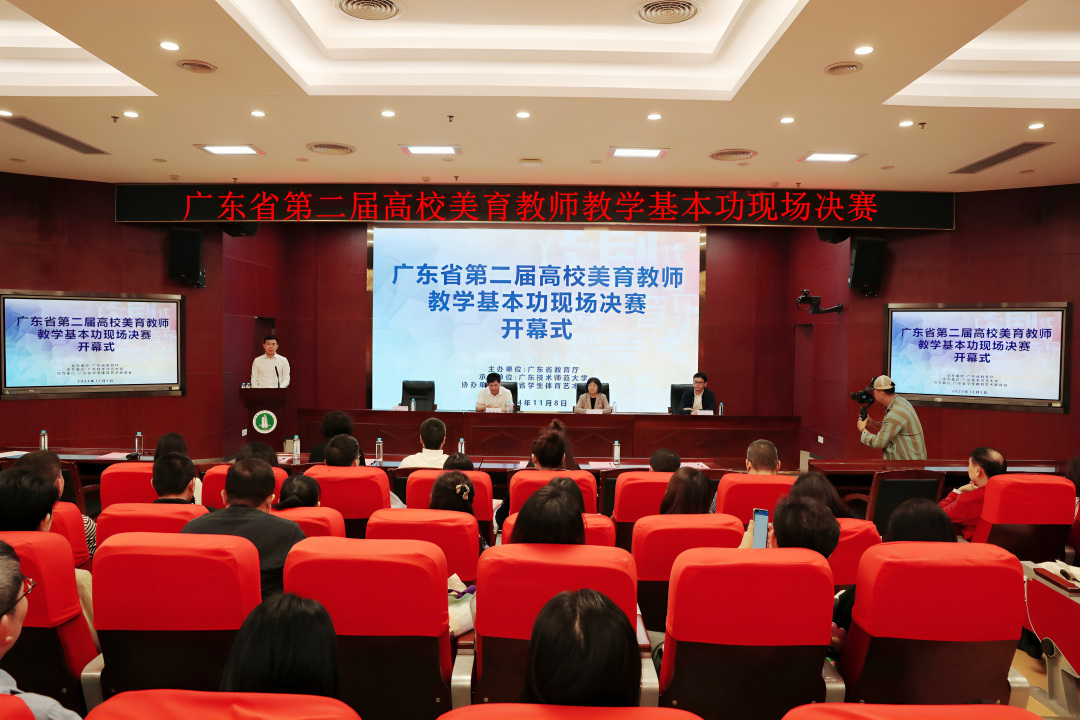 近日,广东省第二届高校美育教师教学基本功比赛在广东技术师范大学开幕。进入现场决赛的113所高校的226名代表参加开幕式。