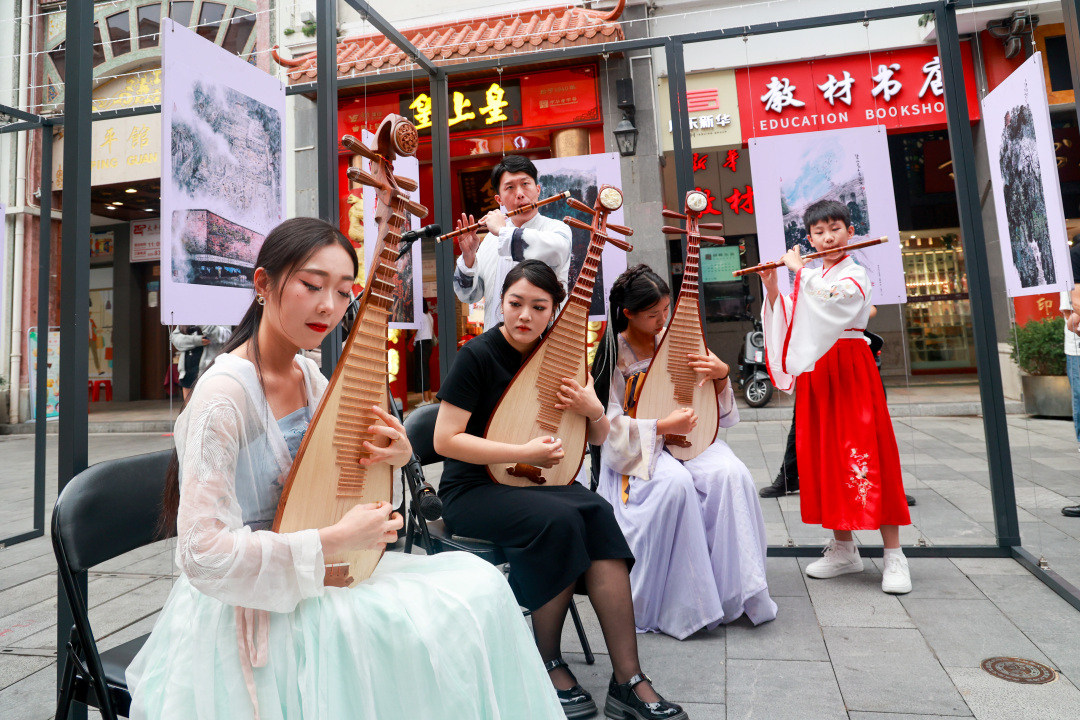 当日下午,数名越秀区永曜北小学红领巾讲解员在展览现场,为参观群众宣讲“大美越秀”精品佳作背后的故事。越秀区音乐家协会青年琵琶演奏家李君熙、竹笛演奏家黄靖在展览现场携学生即兴演奏了《扬鞭催马》《旱天雷+步步高》等曲。凝固的音符、流动的画卷交相辉映,呈现出艺术家眼中“大美越秀”的生动画面。