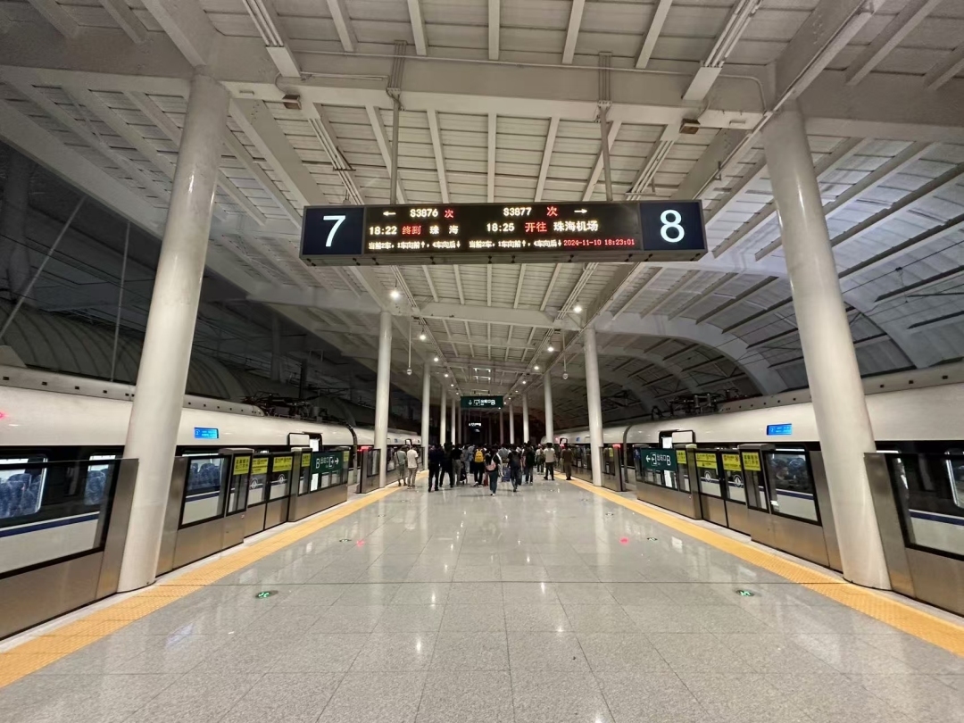 如果参观航展馆后返程,可以从航展馆1号门离开,沿途有醒目标识牌指引前往城际铁路珠海机场站,如果前往珠海机场站1号入口,距离航展馆1号门大约步行10分钟的路程。提前在12306网站购票,刷身份证可直接进站,座位先到先得。