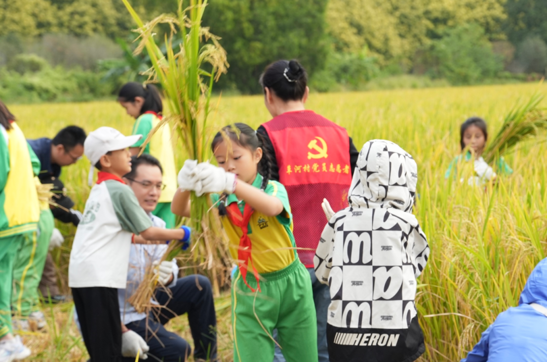 时维金秋,番禺区桥南街草河村的都市稻田披上了一袭绚烂的金纱。11月9日,番禺区桥南街“体验耕读文化 传承劳动精神”庆丰收晚稻收割活动在草河村都市稻田成功举办,桥南街党工委副书记雷杰熙,党工委党建专职副书记岑晓霞,街道办事处副主任莫庭辉、龙佑军、党建办负责人、综合事务中心负责人、市桥草河小学师生和家长,工作人员及志愿者共100余人参与本次活动。据了解,该活动为桥南街草河村丰收系列活动首场,后续将有多场丰收节活动与街坊见面。