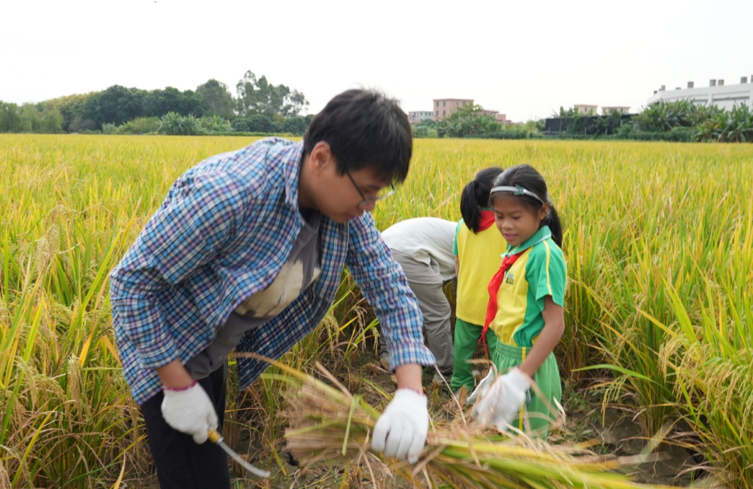 在技术人员的指导下,家长和孩子们纷纷拿起镰刀,走进稻田,亲身体验收割稻谷的过程。他们左手抓水稻,右手拿镰刀,小心翼翼地割下一束束金黄的稻谷,然后拿到打谷机中进行脱粒。阳光下,稻田里欢声笑语不断,孩子们的脸上洋溢着收获的喜悦。