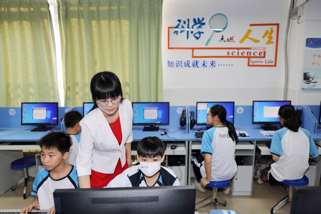“老师在给学生上课之前,首先自己要学习人工智能这门课程,并深入了解其中的原理、吃透它,这样才能教给学生。”何鸿燕介绍,自从开展人工智能课程以后,不仅督促老师提升自己对人工智能课的了解,还在无形中促进老师查漏补缺,发现自己在信息技术课上的不足,两门课程相辅相成,相互促进。