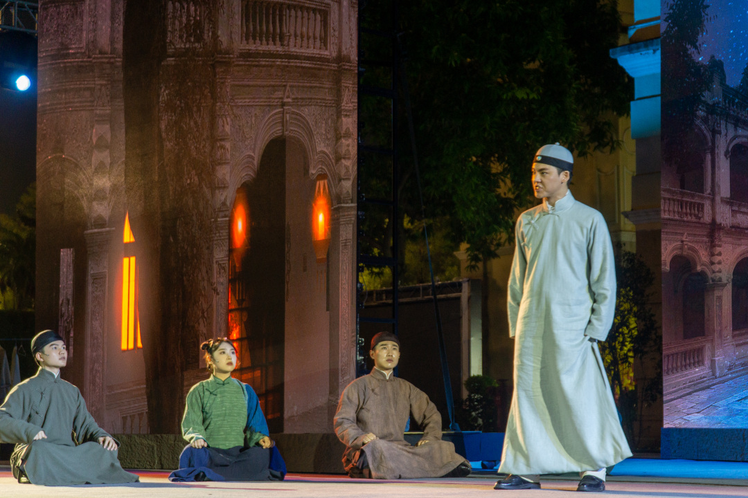 当晚的亮点是原创话剧《百年回响》,该剧以1924年11月孙中山从广州大元帅府北上到1925年3月在北京逝世的历史为蓝本,通过小剧场话剧的形式,生动再现了孙中山先生为国家统一、民族富强、人民幸福不懈奋斗的革命历程,深刻弘扬了他的爱国情怀和崇高风范。