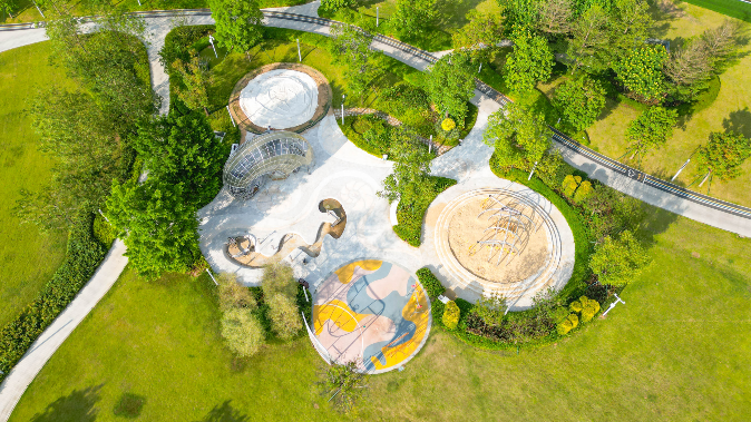 创新城中心公园的设计匠心独运,以生态为先。通过精致的微地形调整,公园内凤凰露营地、艺术花田、飞盘乐园、自然探索乐园等五大景观节点应运而生。原生蕉林与构树等植被在此得以保留,与新增的绿化景观和谐相融,共同构筑出一道别致的生态景观线。