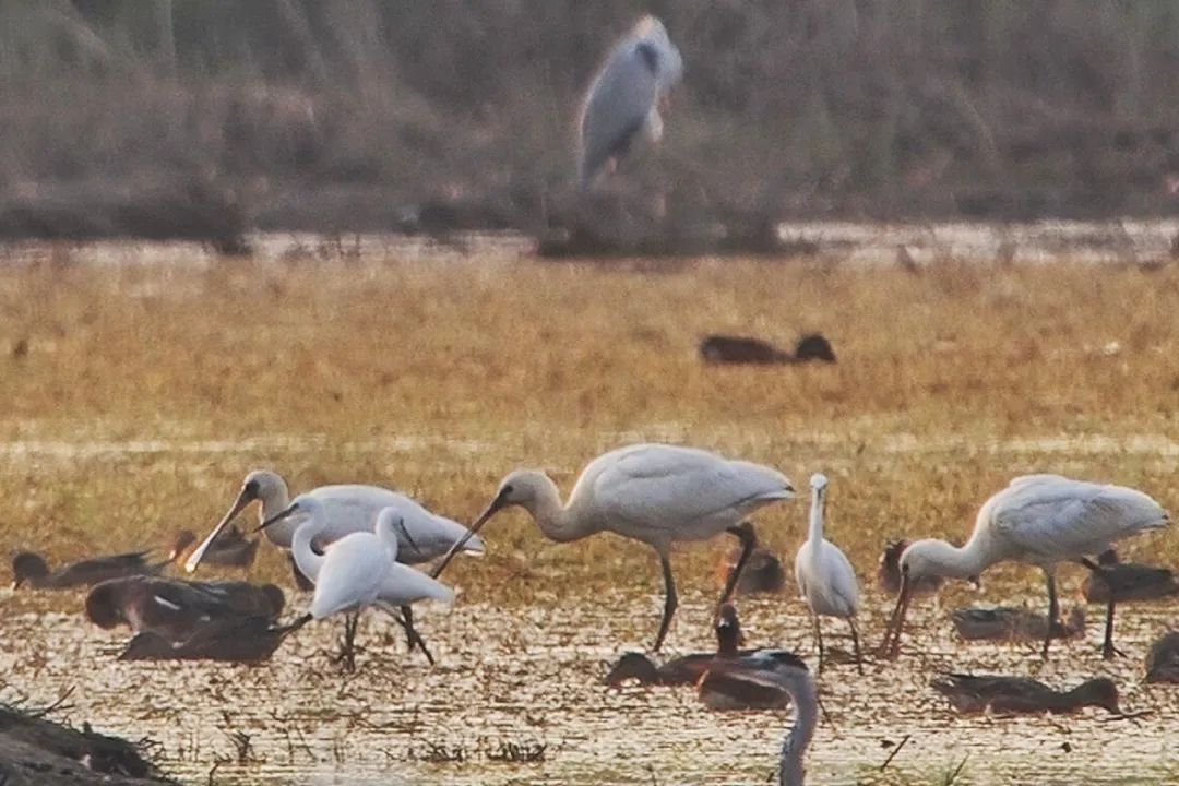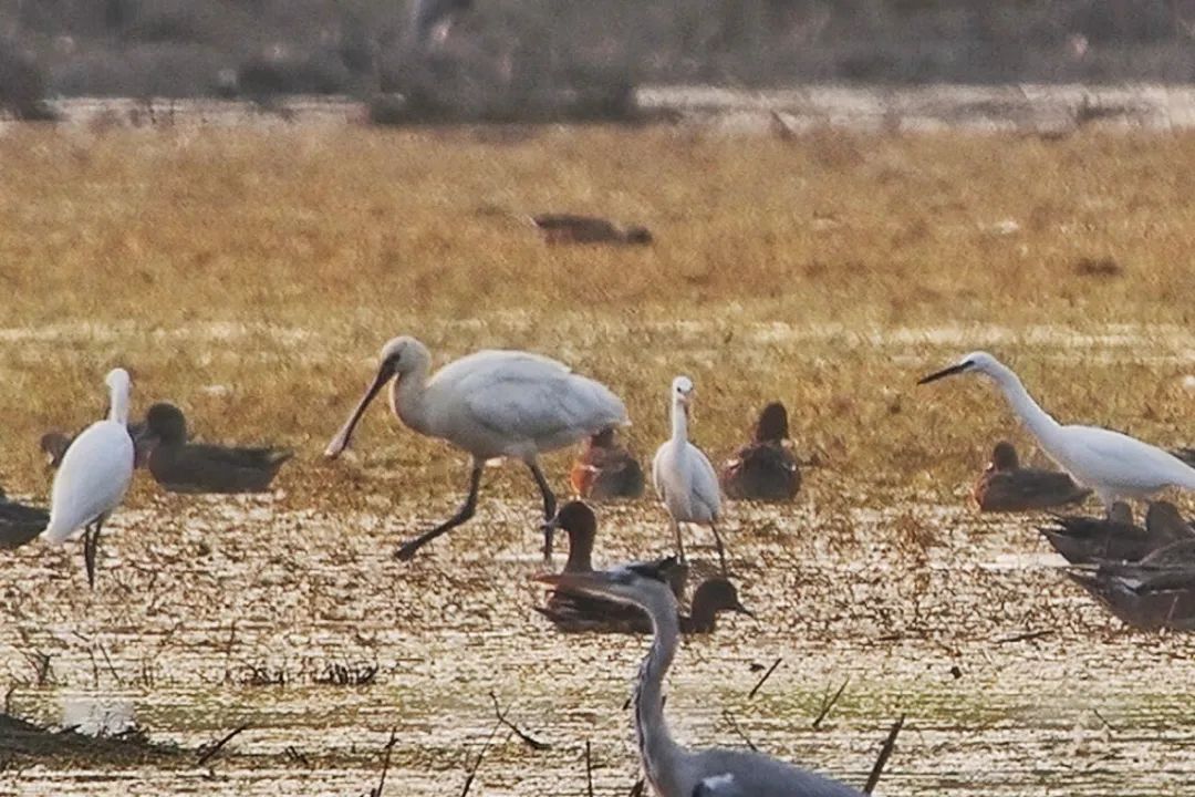 而白琵鹭,这种因嘴巴形状而出名的琵琶鹭,在众多白鹭中显得格外醒目,它们每一个动作都充满了优雅与从容。