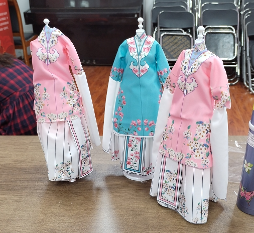 为进一步落实推动传统文化传承,在多宝街公共卫生委员会的指导下,日前,由多宝街“双百工程”社工站、多宝街文化站联合开展的“古韵今承,汉服之美”戏曲服饰手工课堂在多宝街道党群服务中心二楼举行。据悉,本次手工活动所制作的戏服灵感来源于中国的传统戏曲《梨园春》,指导老师表示:“本次制作的戏服上衣是改良的女披,袖子为传统戏曲中的水袖,裙子是马面裙的改良设计,整体风格分别是粉白和蓝白设计。”