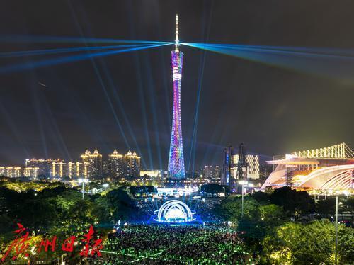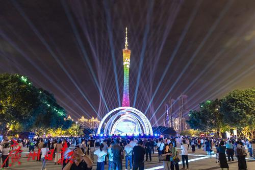 本届灯光节是广州塔首次上演360°环状灯光秀。