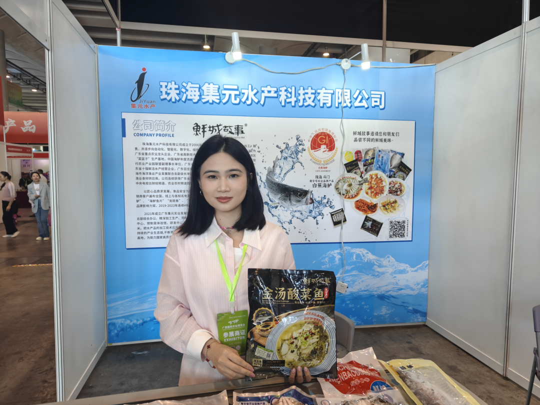“这次我们准备了主打的海鲈鱼、龙斑鱼、大黄鱼等冻品,以及预制菜系列产品,希望让广西朋友也爱上我们的鱼。”广东珠海集元水产科技有限公司副总经理沈丹婷仔细向围观看客介绍着自家品牌。该公司拥有自己独立的品牌——鲜城故事,构建起了健康、可持续的产业生态,是广东省高新技术企业、珠海市的农业龙头企业。