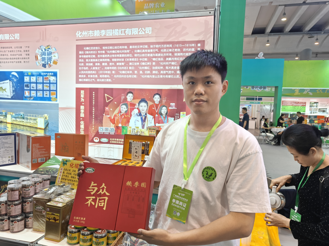 “这次农博会我们为广西朋友带来了高端木盒、罐装铁盒装系列和即食橘红系列等一系列完善产品矩阵,可以适应不同客户的喜好和需求。”据化州市赖李园橘红有限公司经理庄于力介绍,化橘红具有健胃行气、化痰止咳之奇效,在中医药界占有非常重要的席位。赖李园自成立以来,以企业+基地+农户合作的发展模式建立了化橘红标准化种植示范基地1300余亩,指导农户种植橘红,保证了赖李园原材料的质量、采购渠道稳定。每年还从农户手中收购化橘红鲜果,为农户直接增收600多万元,带动父老乡亲走上乡村致富道路。