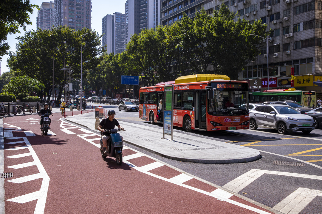 “我觉得这样各行其道挺好。”采访期间,正在等候14路公交车的市民陈先生说,“以往得留意途经的电动自行车和共享单车,避免被撞,现在这些非机动车绝大多数都从公交站台后方通过,我们上下公交车时更加安心、舒适。”