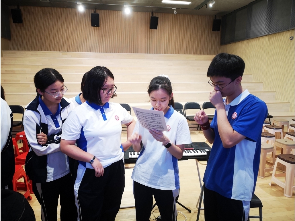 金声合唱团,是红岭的另一个王牌社团,成立于2007年9月,在各级各类赛事中多次获得金奖,已经在深圳音乐厅、深圳大剧院等专业的音乐厅和剧院成功举办了14场大型专场合唱音乐会,成为全国颇具影响力的学生合唱团。当天的训练已结束,学生大多已离场,4名高二的团员仍在排练室,应记者提议随即大方地合唱了一曲,歌声婉转动听。2名高三的原合唱团员在排练室里流连,他们告诉记者,“很喜欢合唱团,回到排练室就像回到家一样,轻松而愉快”。