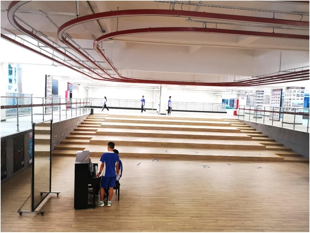 红岭中学高中部将一个会议室改建成小剧场。常设钢琴供同学们弹奏,这里也是街舞社团训练场地。