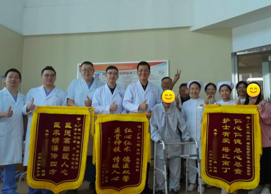 手术出血很少。术后在医护人员的精心治疗下,汤奶奶恢复良好,第二天就可以坐起身来,并扶着助步器下床适量活动。目前她已平安出院。