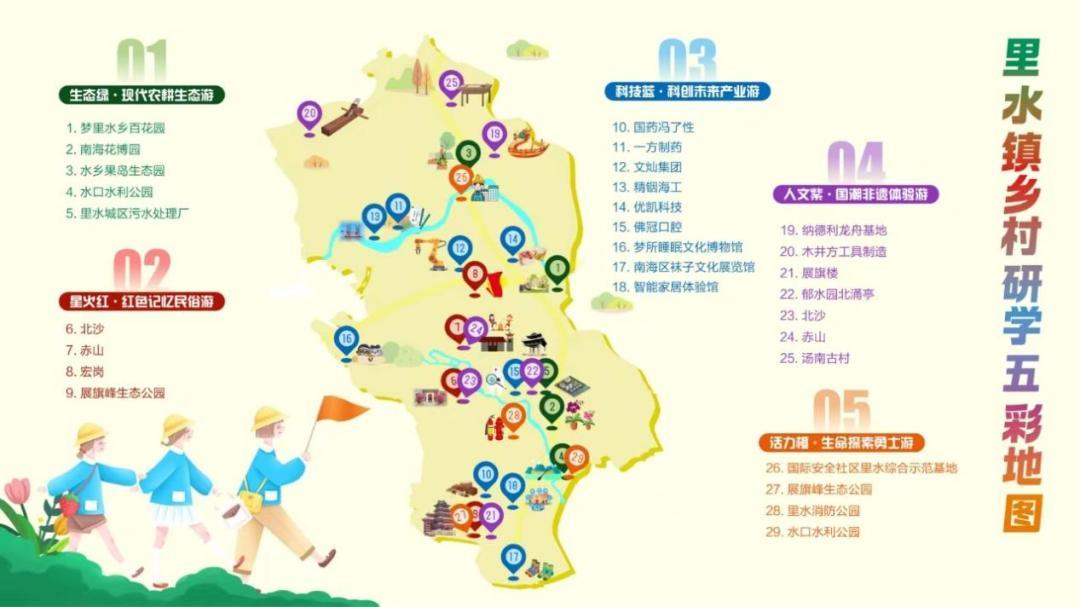 当前,南海区正重点推进乡村研学旅游,全面梳理和挖掘“百千万工程”和乡村振兴的亮点,引导青少年、大学生和新市民等群体深入乡村进行了解,同时推动乡村经济发展新型模式,促进乡村经济焕发活力。活动中,里水充分挖掘本土历史文化、乡村特色、产业优势等资源,正式发布了里水镇研学旅游计划和乡村研学五彩地图。