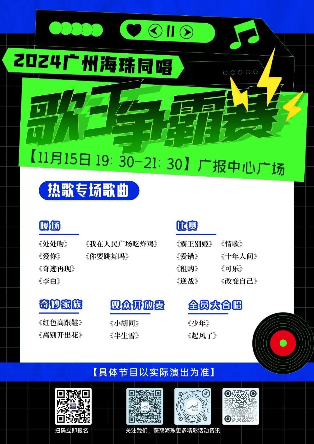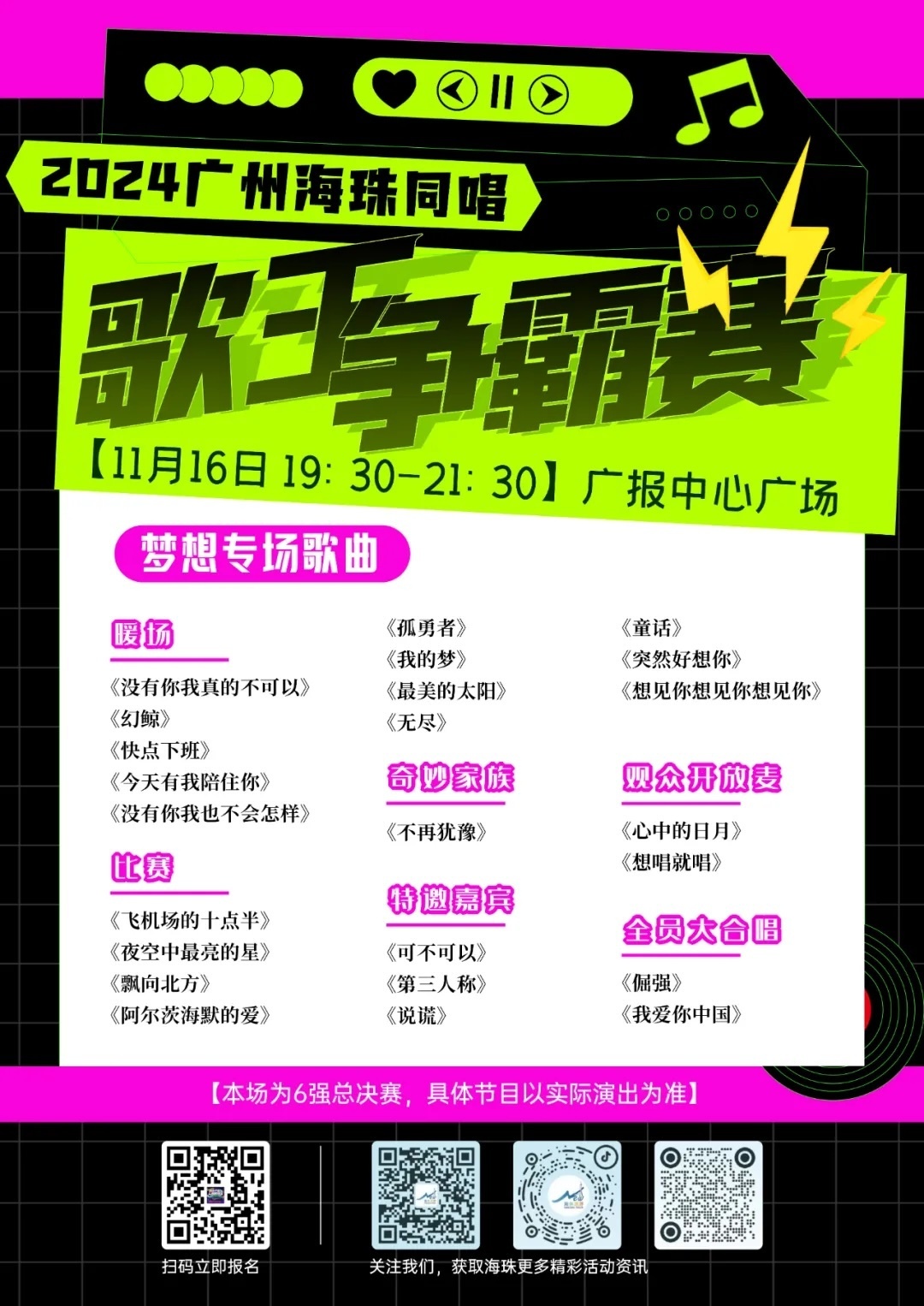 11月15日-16日,羊城歌王争霸赛即将迎来决赛,立即扫码预约限量免费门票。