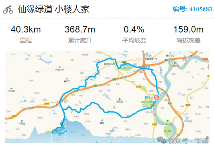途经点:何仙姑文化广场-小楼大道-Y328-棠夏村-坑坝街-老屋街-沙岗路南行-田园牧歌农业公园-二龙山花园停车场-邓山村-田园牧歌农业公园-沙岗村-正福线-二龙村-老屋村-Y331-曾山路北一巷-高丰东路-腊圃村村委会-朝阳南路-小楼人家景观大道-S380-二龙河江边路-西园村-X261-何仙姑文化广场