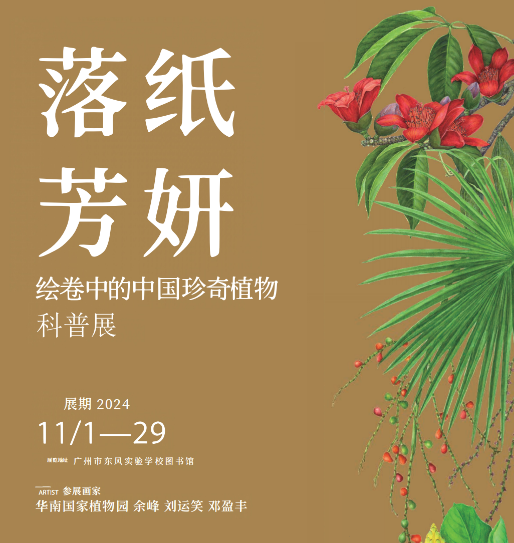 近日,“落纸芳妍——绘卷中的中国珍奇植物”科普展在广州市东风实验学校图书馆展出。该活动由华南国家植物园和广东美术馆联合策划,展出了华南国家植物园余峰、刘运笑、邓盈丰3位专业画家的作品。在艺术家的画笔下,每一幅作品都栩栩如生、纤毫毕现地还原出植物真实的肖像和独有的性格,体现出自然之韵、生命之美。