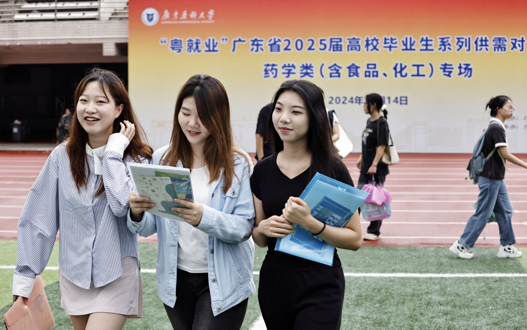 11月14日,由广东省教育厅主办,广东药科大学(以下简称广药大)承办的“粤就业”广东省2025届普通高校毕业生系列供需对接活动——药学类(含食品、化工)专场在广药大学城校园田径运动场举行。