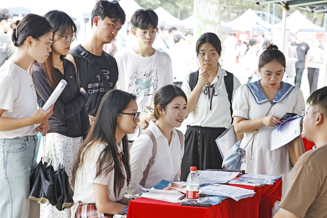 省内外高校毕业生共有3000余人参加了此次专场招聘会。广药大中药学研究生小韩在一家企业前排起了队,准备递交简历面试。她说,自己的期望薪酬是月薪8000元,希望能找到合适的研发岗位或药理研究员岗位。