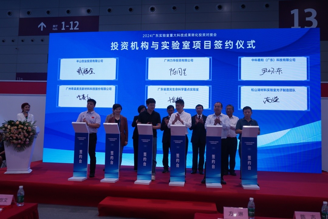 对接会上,广州力华投资有限公司和广东省激光生命科学重点实验室、中科羲和(广东)科技有限公司和松山湖材料实验室光子制造团队、半山创业投资有限公司和希森美克功能性纳米涂层研发实验室签订项目合作协议;广东省科技金融促进会分别和广东省科技基础条件平台中心、广州市中创集团股份有限公司、南沙海洋装备产业园签约共建实验室成果转化基地;广东省粤科创业投资有限公司分别和人工智能与数字经济广东省实验室(广州)、人工智能与数字经济广东省实验室(深圳)、先进能源科学与技术广东省实验室(东江实验室)签约成立实验室成果转化基金。高交会期间,该对接会还将举行多场项目对接活动。