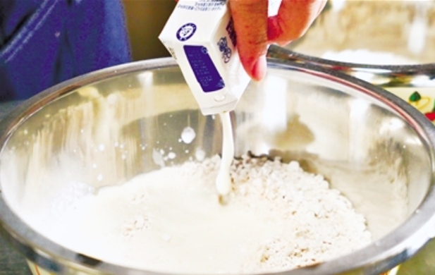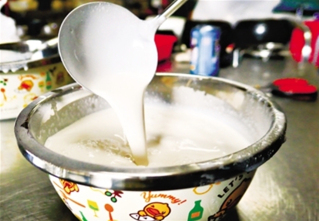 1.马蹄粉加入牛奶搅拌均匀,做成生浆备用。