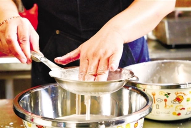 虽说郭美玲制作马蹄糕的技艺由老一辈传授,但她制作的马蹄糕,无论是造型和口味,都充满了年轻人勇于挑战和尝试的精神。在郭美玲看来,制作马蹄糕的过程可谓“失之分秒,差之千里”,多一秒和少一秒蒸出来的口感都很不一样。“我调整过很多次比例,还试过蒸28层的马蹄糕,最终发现口感最好的是9层。”而在口味上,郭美玲也喜欢追求新鲜感,“花生马蹄糕、百香果马蹄糕、鸡屎藤马蹄糕……我姐姐每次做的马蹄糕都会有些新花样。”郭锡文笑着说。