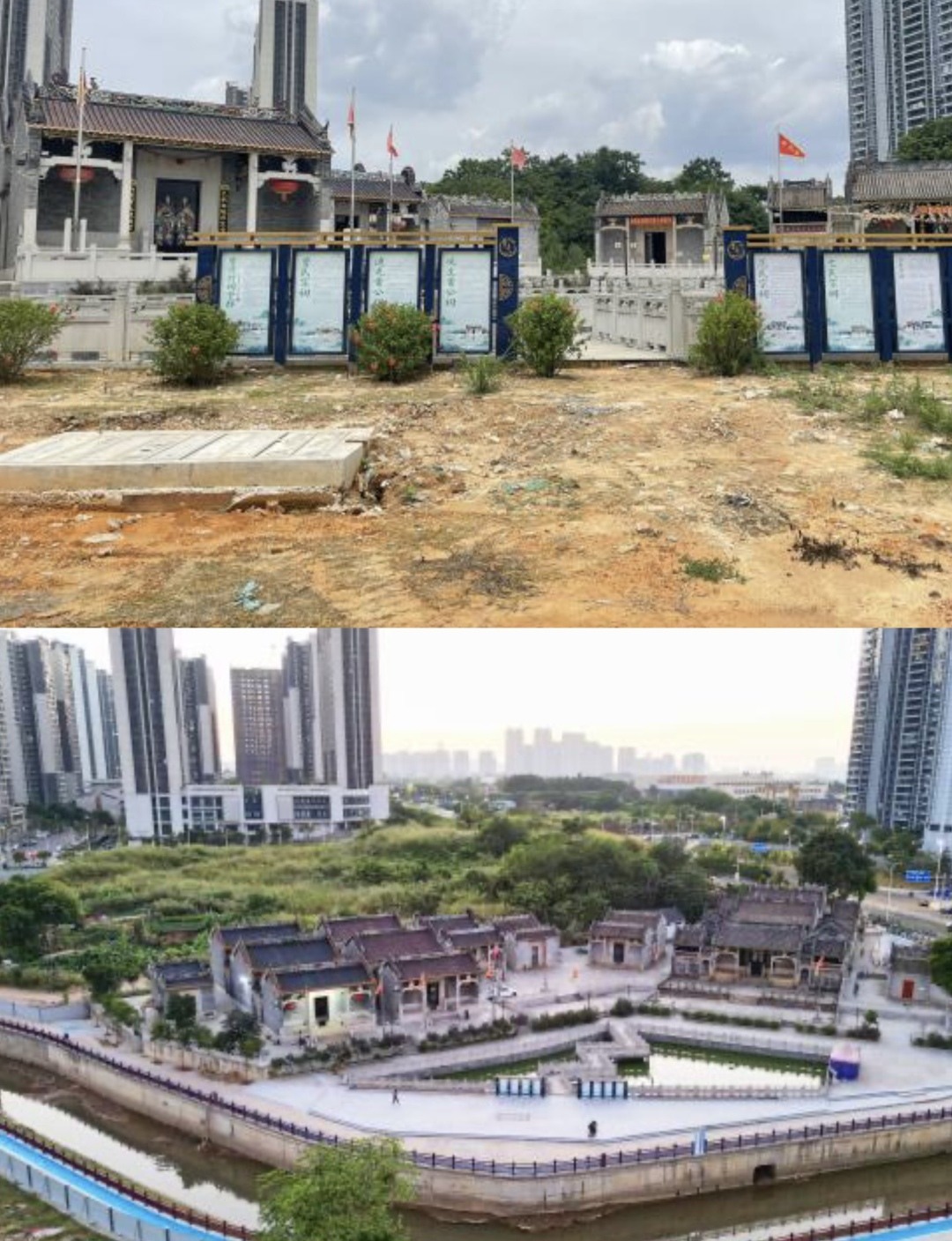 在祠堂段,原有的跨涌桥梁得到了精心的翻新整饰。通过整合现有的树木资源,并采用硬质铺装与草皮地被相结合的方式,工程团队显著提升了祠堂广场的活动空间品质,使其逐渐发展成为曾边村的文化新地标,吸引着众多游客和市民前来参观游玩。