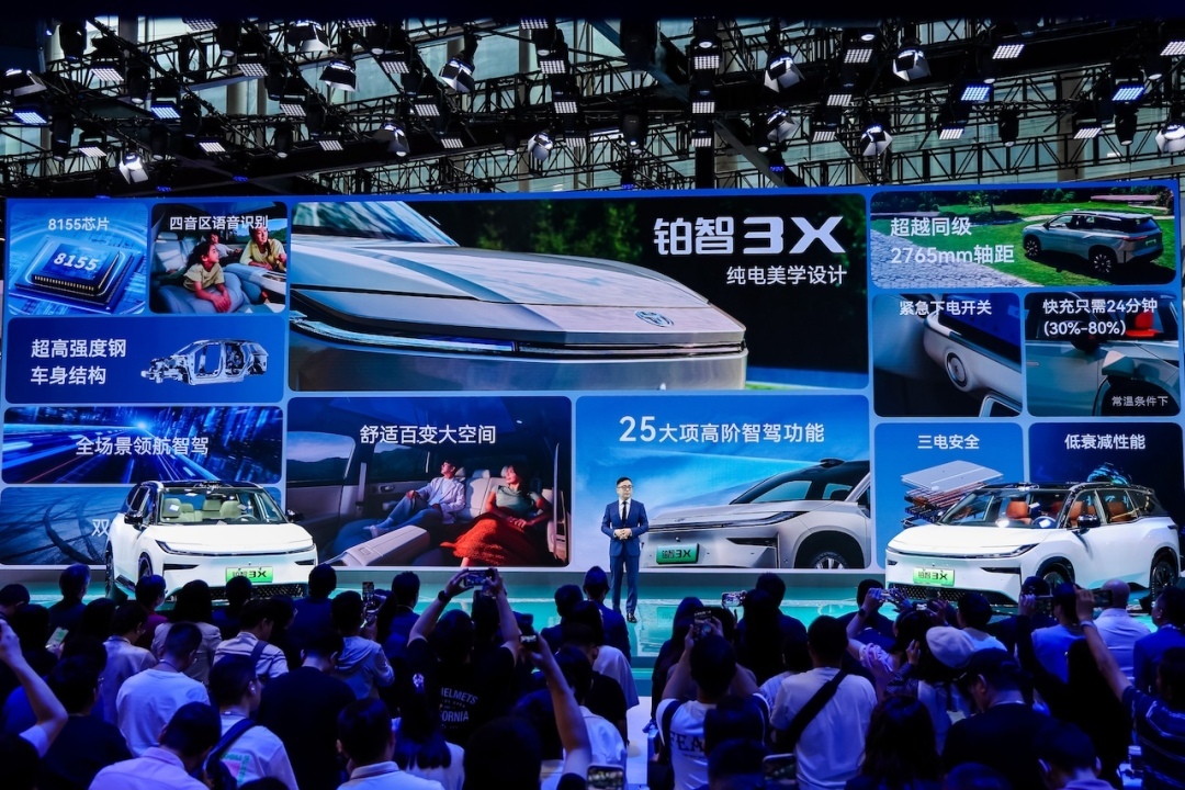车型方面,铂智3X基于全新纯电平台的布局优势,为用户打造实现“A级定位、B级尺寸、C级后排空间”的空间体验。在2765mm的轴距基础上,铂智3X提供了最大984mm的同级最大后排空间和1215mm的车内高度。铂智3X还提供前排座椅放平、带电动遮阳帘的1.14㎡全景天幕、80°超大后门开度以及多打11处的前排收纳空间,灵活实用的空间设计让用户有了铂智3X就相当于有房,秒变起居室、大床房。不仅如此,铂智3X还搭载了全新的智能交互系统,支持前后排四音区语音交互独立控制,让每个座位都享受“智能平权”。