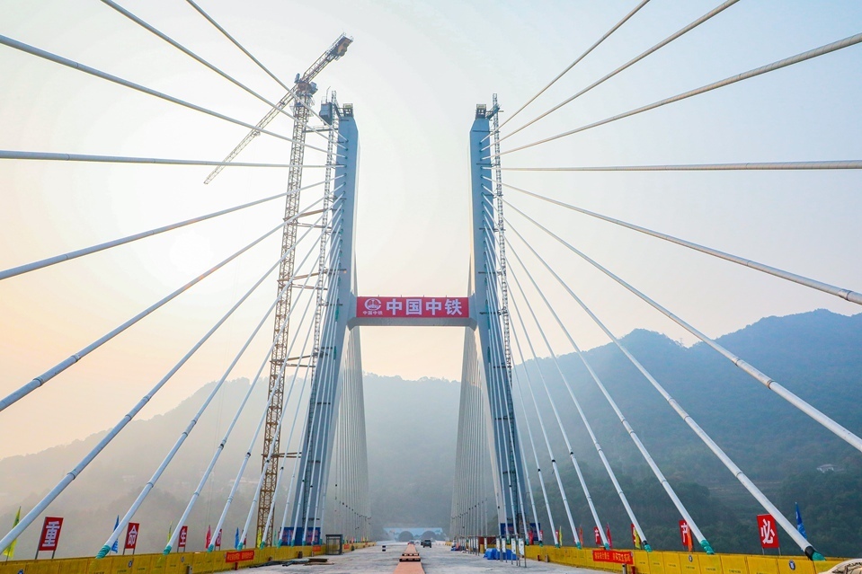 中铁广州工程局项目负责人介绍,该桥具有“主塔高、技术优、材料新”三大特点。项目自2021年6月开工以来,建设团队始终坚持“智能建造、绿色环保”建设理念,精心谋划,攻坚克难,优质高效地完成各项节点目标,为大桥顺利合龙奠定了坚实基础。