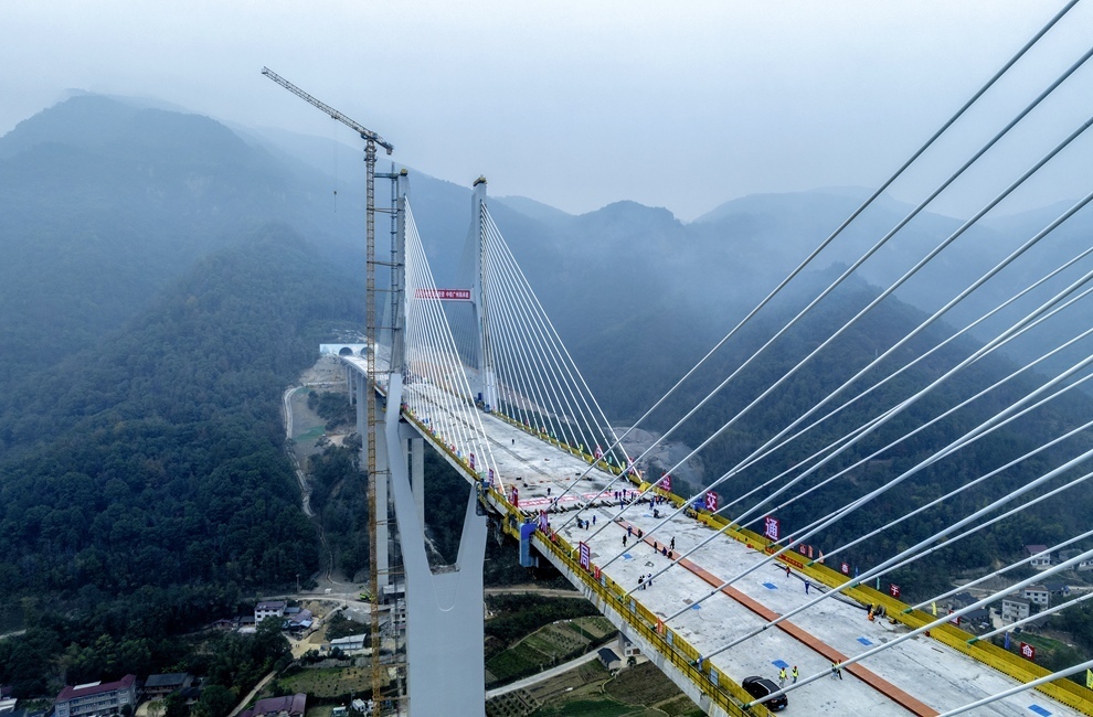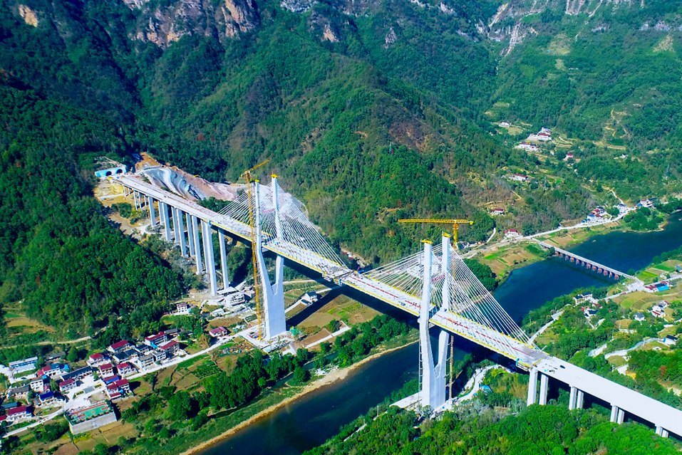 长潭河溇水特大桥是炉慈高速公路的控制性工程,位于张家界市慈利县零阳镇长潭河村,连接慈利隧道和尖峰岭隧道。大桥全长1060米,主跨280米,主塔高达211米,被誉为“湘西第一高塔”。桥面距河面150米,为双塔双索面混凝土梁斜拉桥,大桥建设工艺要求高、施工区域地势险峻、环水保要求严,是一座科技攻关型桥梁。