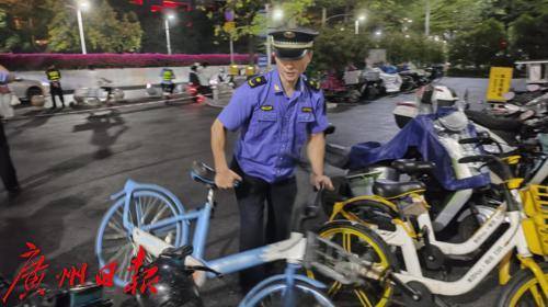 随着低碳生活、绿色出行的理念普及,越来越多的市民选择用共享单车代步。据了解,天河城管部门在灯光节期间重点保障共享单车秩序,在灯光节区域内的关键点位,如地铁出入口、公交站点、过街隧道等持续备勤、巡查,实时清运规整淤积共享单车,维护良好停放秩序。另一方面,积极与共享单车公司联动,集中清运规整活动区域内的共享单车,引导市民文明有序停放。据统计,127 名执法人员(包含属地街执法队)协同 10 台执法车辆,持续对灯光节活动区域展开人流秩序管控,坚决整治违反市容环境秩序的行为,清理整顿乱摆摊点的违规经营和乱贴乱挂的广告乱象,保障市民出行安全,为活动现场保驾护航。