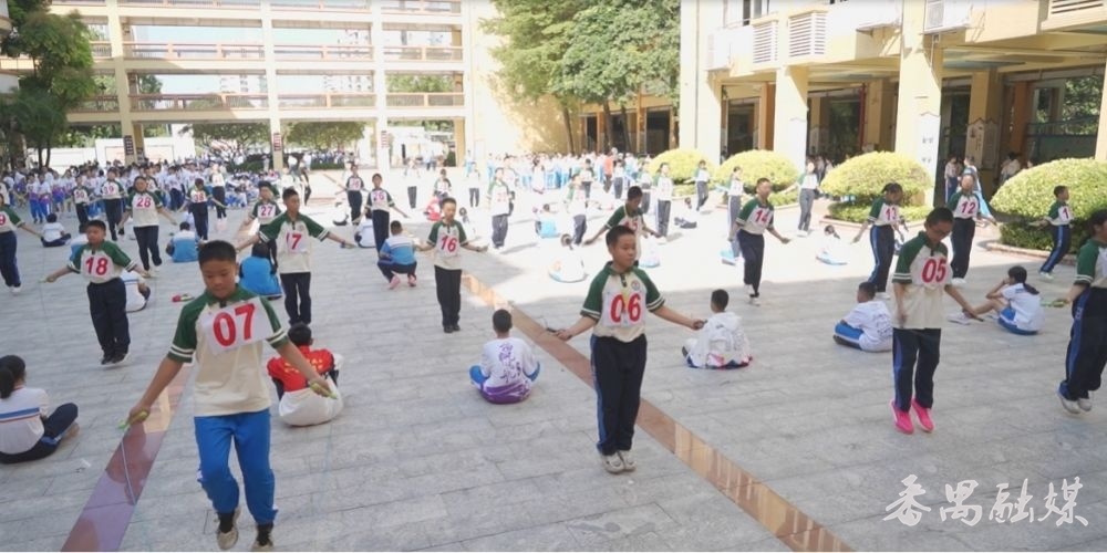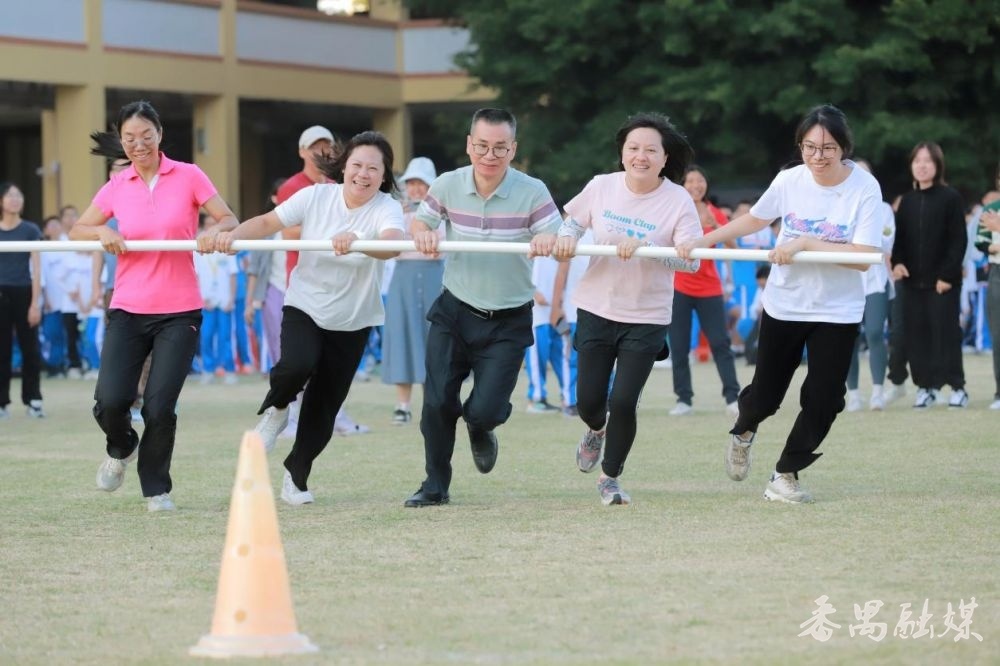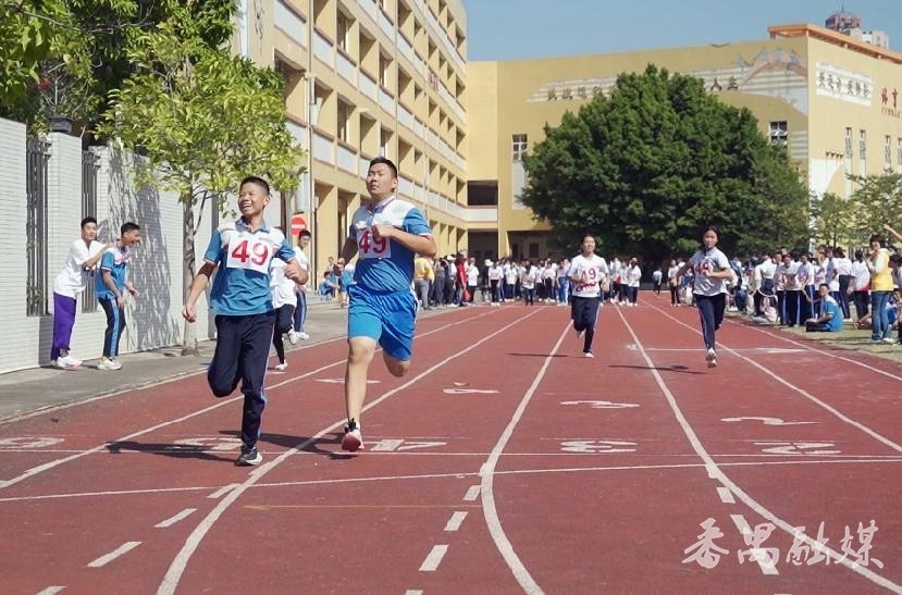 在趣味运动会中,旋风接力跑、同步接力走、并肩接力跳等项目让师生们乐在其中,整个校园充满了欢声笑语。