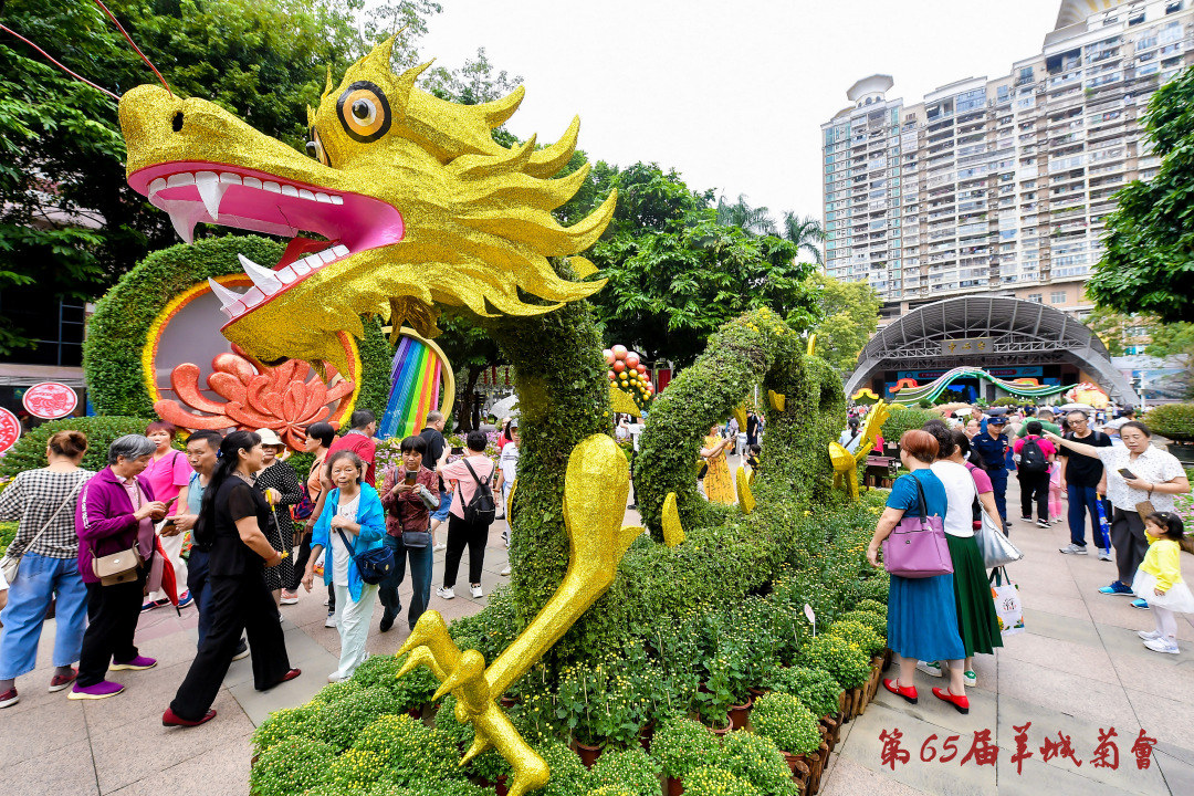 秋风送爽,一场花约如期而至。11月16日,广州市历史最悠久、规模最大、连续举办时间最长、影响力最大的专业菊花展览——广州文化公园第65届羊城菊会开幕,持续至12月1日,免费向市民游客开放。今年,菊会以“活力湾区·新彩广州”为主题精心打造,共设10个专题展区,布置11个主题景组,展出艺植造型菊60座、扎作造型菊40座、高校菊花艺术园圃42组,品种菊500多种,以及大立菊、悬崖菊、盆景菊、树菊等艺菊1200多盆,各类盆菊、时花超过8万盆。